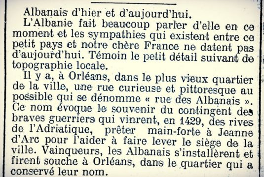 Gjendet në Orléans, në qendrën më të vjetër të qytetit, një rrugë e çuditshme dhe mjaft piktoreske që quhet “Rruga e Shqiptarëve – Rue des Albanais”.