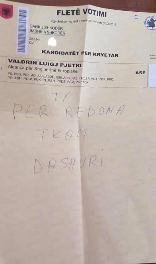 Duke shfrytëzuar faktin që një pjesë e fletëve të votimit janë bërë virale për shkak të qytetarëve që nuk e kanë patur të rëndësishme votimin, por të japin mesazhe në fletë që hedhin në kuti, një shkodran, ka zgjedhur 30 qershorin për të shprehur dashurinë.