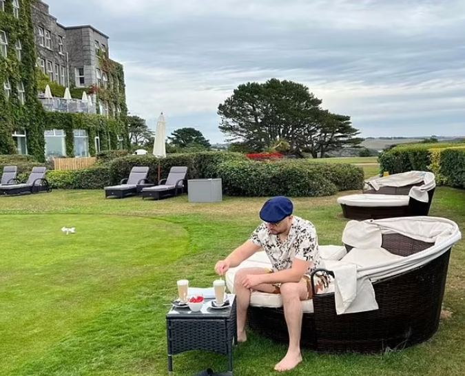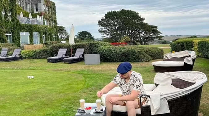 Por në rrjetet e tij sociale shihet duke pushuar në një hotel luksoz me katër yje në bregdetin e Kornuoll, ku çmimet e dhomave nisin nga 250 £ nata.