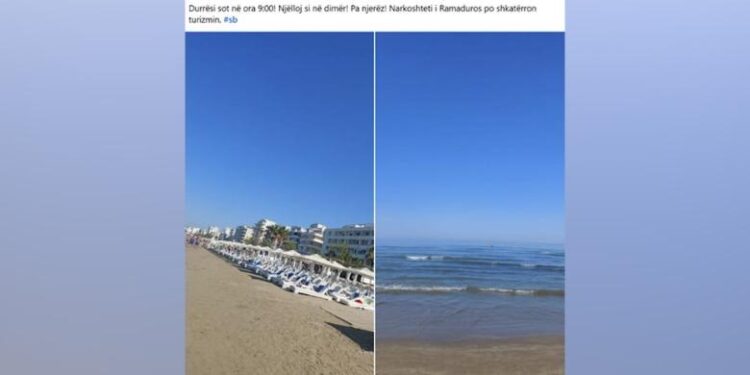 “Durrësi sot në ora 9:00! Njëlloj si në dimër! Pa njerëz! Narkoshteti i Ramaduros po shkatërron turizmin. #sb” – ka shkruar Berisha në Facebook.