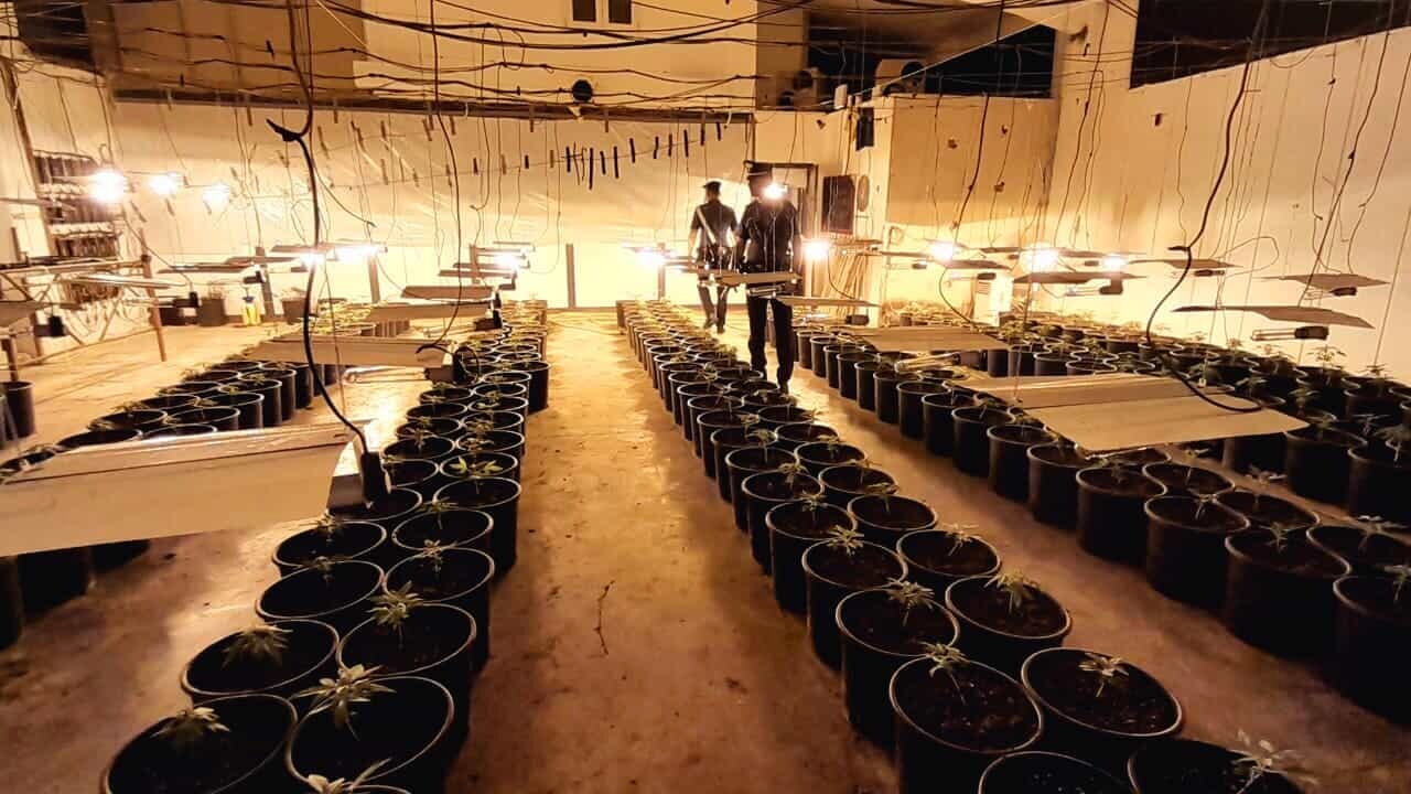 Sipas asaj që shkruajnë mediat, autoritetet gjetën në magazinë 300 rrënjë kanabis, të rritura deri në 40 centimetra.
