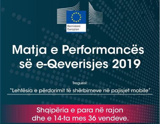 Shqipëria është vlerësuar nga Komisioni Europian si e para në rajon për Qeverisjen Elektronike në 2019. Lajmin e ka bërë publik kryeministri Rama i cili ka shpërndarë edhe një foto të grafikut të 36-vendeve që aplikojnë E Qeverisjen.