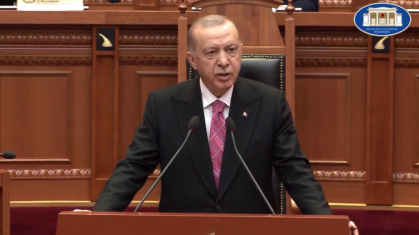 Presidenti turk Recep Tayyip Erdogan mbajti një fjalë përshëndetëse në Kuvendin e Shqipërisë. Erdogan u shpreh se marrëdhëniet turko-shqiptare janë të thella dhe tradicionale. Ai u shpreh se Shqipëria ka ruajtur një rol konstruktiv në Ballkan. Sipas Erdogan për sa kohë, Shqipëria dhe Turqia mbrojnë qëllimet e përbashkëta dhe vendosmërinë për të çuar para bashkëpunimin, askush nuk mund të prishë “këtë panoramë të bukur dhe kaq të këndshme siç po e shikojmë së bashku”.