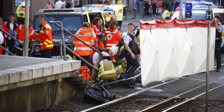 Pamjet nga vendngjarja tregojnë një karrocë fëmije të shkatërruar mbi shinat e tramvajit, duke rritur shqetësimet për pasoja më të rënda. Autoritetet lokale raportojnë se disa persona janë plagosur, mes tyre edhe në gjendje të rëndë, por numri i saktë ende nuk është konfirmuar.
