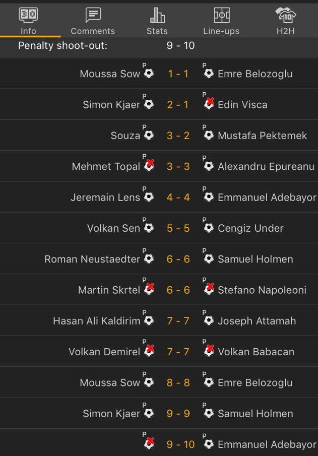 Për t’u mësuar finalisti i dytë i Kupës së Turqisë, është dashur të ekzekutohen 26 penalti, ku dështuan lojtarët e Fenerbahçes.