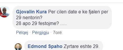 Dikush e pyet për saktësimin e datës dhe deputeti sqaron përmes një komenti që zyrtarisht Shqipëria është çliruar më 29 nëntor.