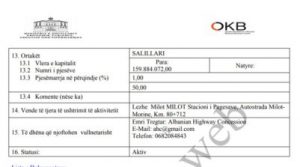 Kompania e krijuar për këtë qëllim Albanian Highëay Concession, kontrollohet 50 për qind nga Kastrati Group dhe 50 për qind nga kompania Salillari.