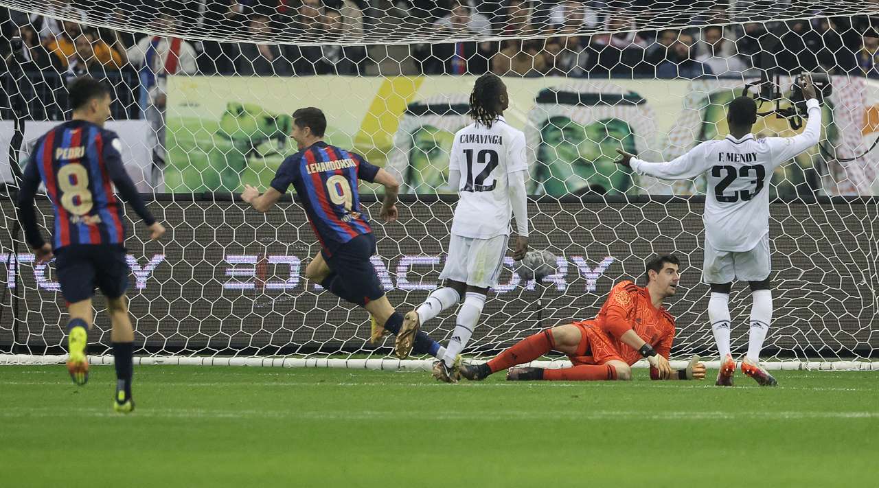 Goli i parë i ndeshjes u realizua nga Gavi në minutën e 33-të, ndërsa në fundin e pjesës së parë, polaku Lewandowski shënoi edhe golin e dytë. Një tjetër talent, Pedri shënoi golin e tretë në minutën e 69-të, ndërsa Benzema realizoi në minutën e 93-të.