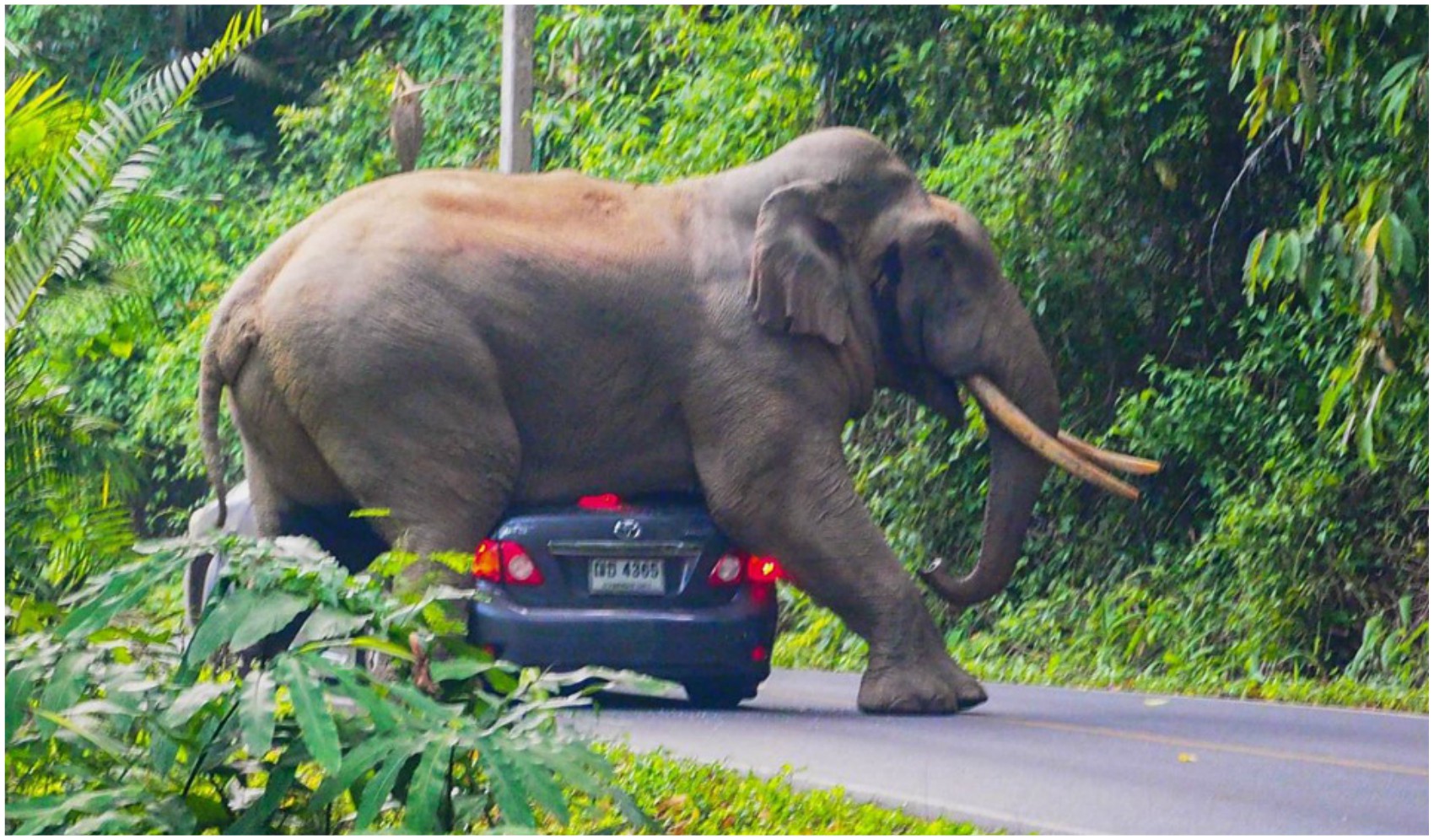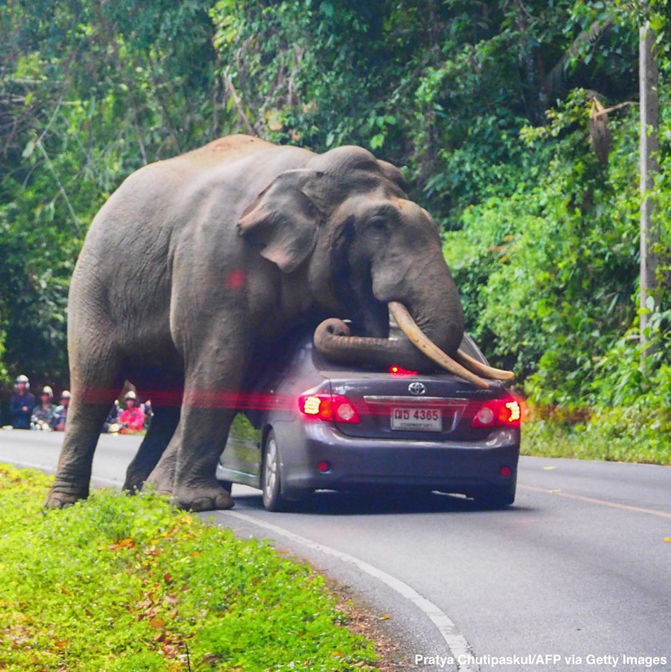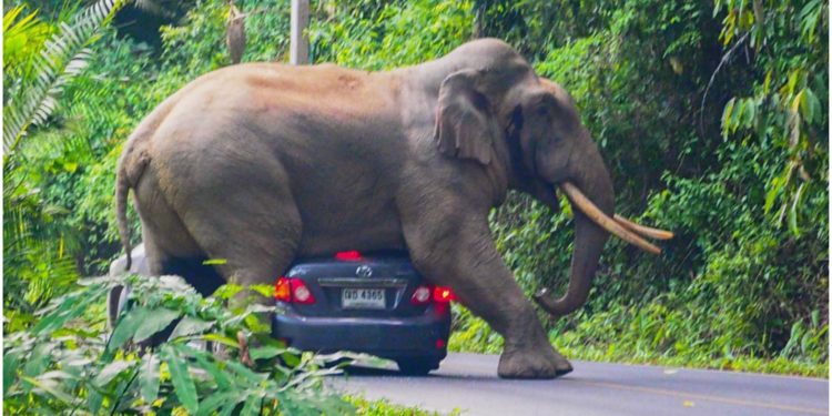 Të gjitha makinat e tjera kaluan, por elefanti te parku kombëtar Kao Jai në Tajlandë vendosi se kjo makinë, specifikisht, nuk duhej të kalonte.