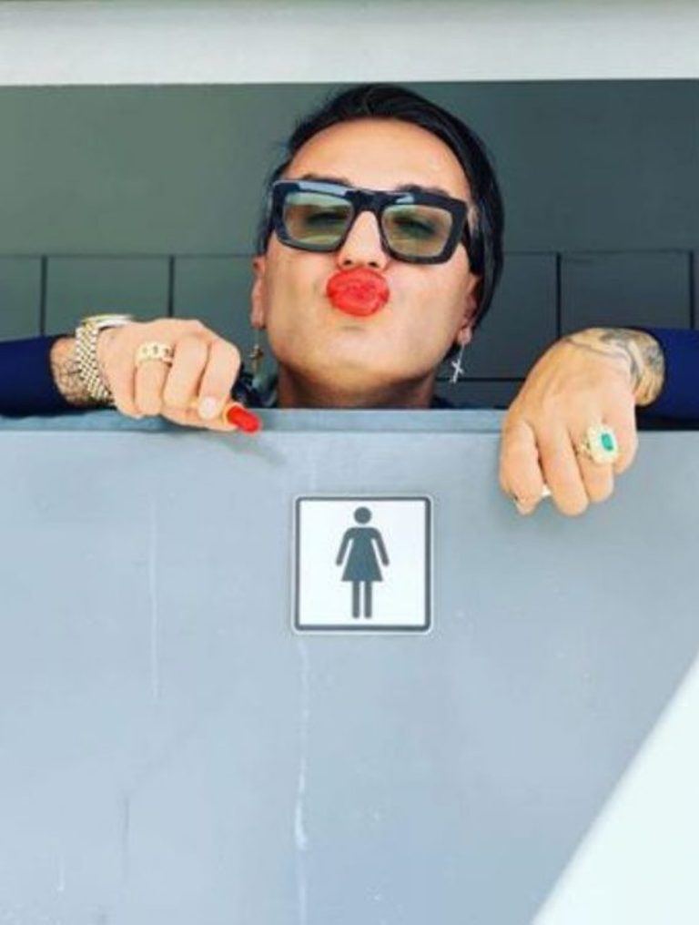Në rrjetin social Instagram ai ka postuar një foto ku shihet në një tualet femrash dhe në dorë mban një buzëkuq.