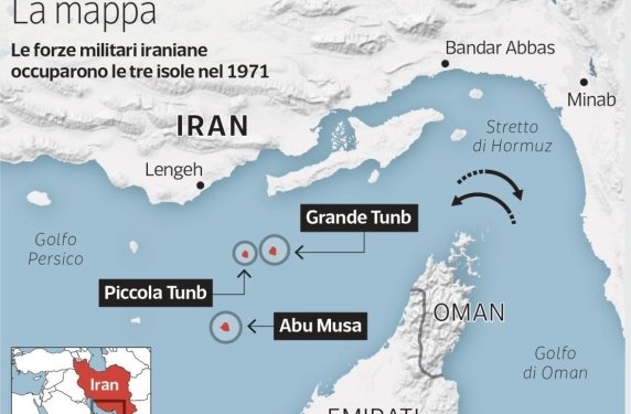 Në 1971-in, përpara se të krijoheshin Emiratet, ushtria e atëhershme e Shahut të Persisë okupoi tre ishuj strategjikë, Abu Musa, Grande dhe Piccola Tunb, që kontrollojnë Ngushticën e Hormuzit. Këto toka janë pretenduar nga të dy palët dhe mbeten një pikë konflikti që nuk është zgjidhur kurrë.