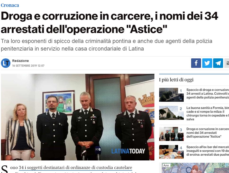Policia italiane ka zhvilluar një operacion të gjerë antidrogë në Latina, duke arrestuar gjithsej 34 persona. Operacioni i titulluar “Astice” përfundoi me 30 të arrestuar dhe që u vendosën në qeli, e të tjerët janë në kërkim ose në arrest shtëpiak.