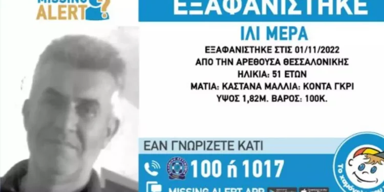 Protothema.gr shkruan se bëhet fjalë për 51-vjeçarin shqiptar Ylli Mera. Ai ka humbur gjurmët mesditën e 1 nëntorit në zonën e Arethousa, Selanik.