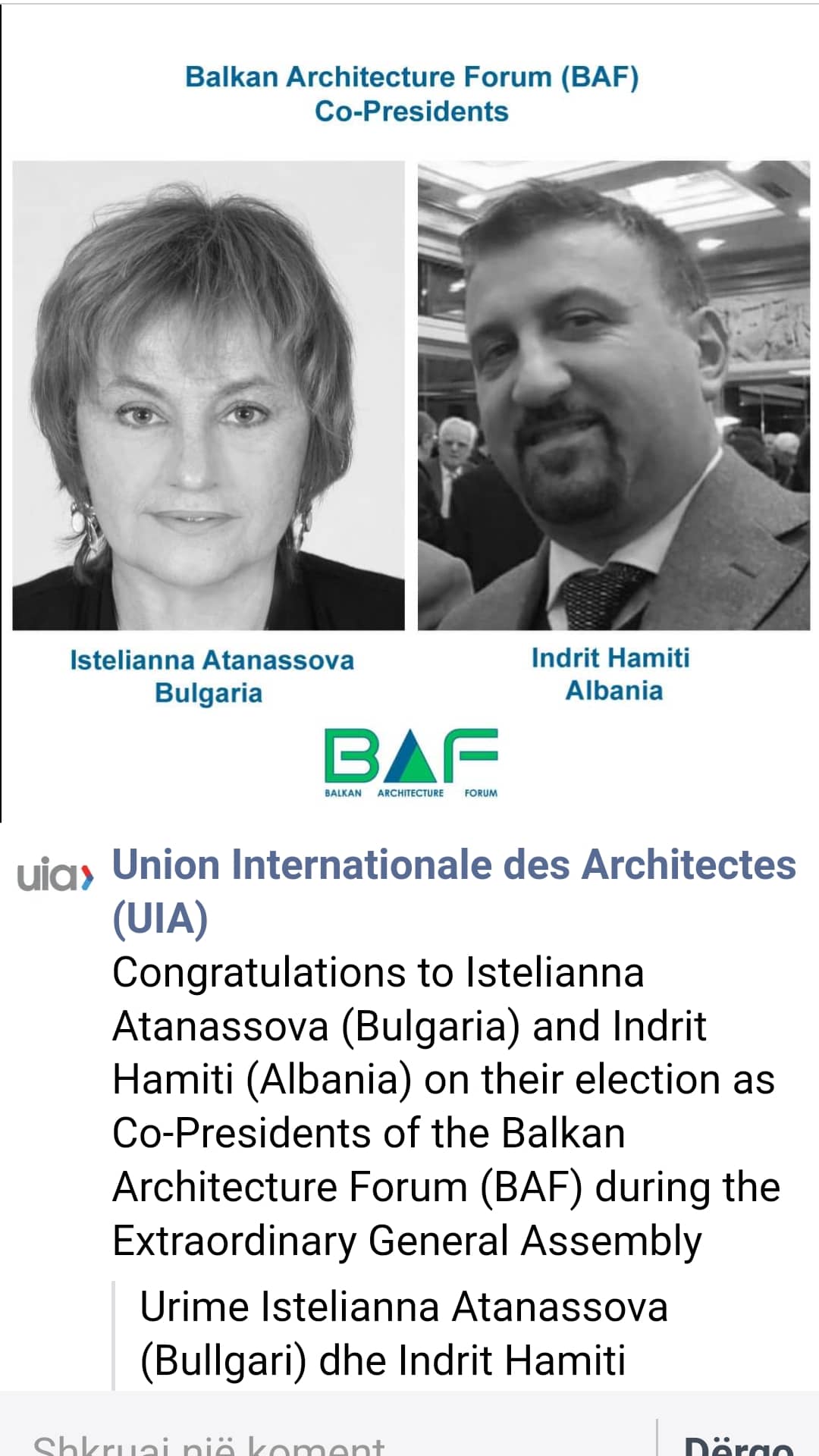 Arkitekti Indrit Hamiti është tashmë bashkëpresident i organizatës, që përfaqëson arkitektët e Ballkanit.