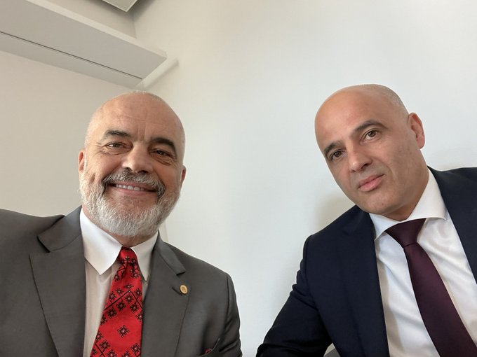Kryeministri Edi Rama ka ndarë një selfie me kryeministrin e Maqedonisë së Veriut, Dimitar Kovaçevskin, e shkrepur gjatë samiti të BE-së që po zhvillohet në Bruksel.