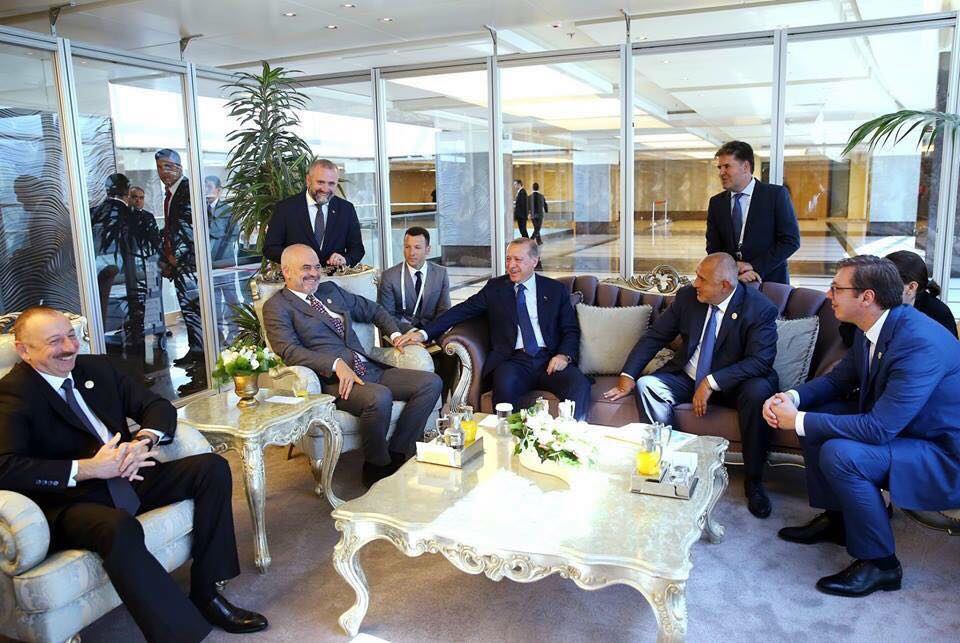Kryeministri Edi Rama ndodhet në Turqi ku po mbahet “Kongresi Botëror i Naftës”. Veç takimit kokë më kokë me presidentin turk Erdogan, Rama ka pasur edhe një takim tjetër ku ndodhej edhe presidenti serb Aleksandër Vuçiç.