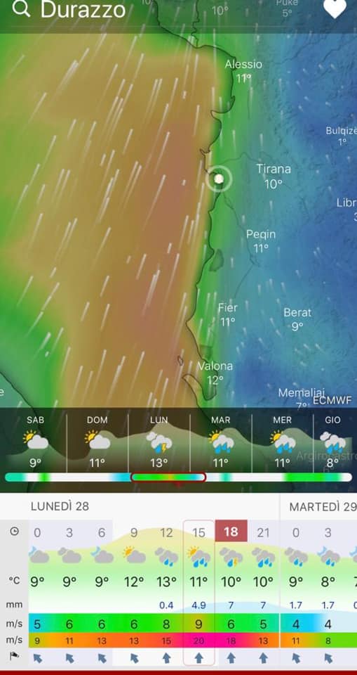 Në një njoftim për shtyp të kësaj drejtorie theksohet se “informojmë lundërtarët dhe pronarët e mjeteve detare, operatorët në portet e Republikës së Shqipërisë dhe hapësirën detare, që ditën e hënë më 28 janar bregdeti ynë do të përfshihet nga erëra me shpejtësi deri 20 m/s nga drejtimi Jug-Jugperëndim dhe forca deti 7-8 shkalla Boufort”.