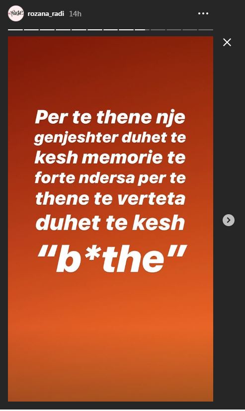 Në një Story, Rozana flet për të vërtetën dhe gënjeshtrën duke klasifikuar personat që kanë apo jo guxim të thonë mendimin e tyre në sy.