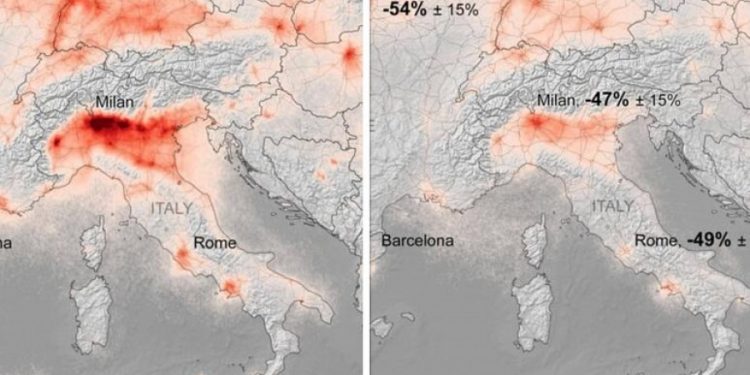 Ndotja e ajrit ka rënë me mbi 45 për qind, krahasuar me të dhënat e krahasuara nga viti 2019, në disa qytete të Europës si rrjedhojë e masave kufizuese që i kanë detyruar qytetarët të qëndrojnë në shtëpi.