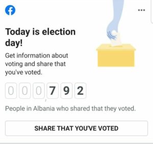 Një surprizë të veçantë ka bërë edhe applikacioni aq shumë i përdorur nga shqiptarët, edhe FaceBook i ka njohur zgjedhjet dhe ditën e sotme i ka kushtuar një “rubrikë të veçantë gjithë qytetarëve që duan të tregojnë se votuan. (Lexo.al)/l.m