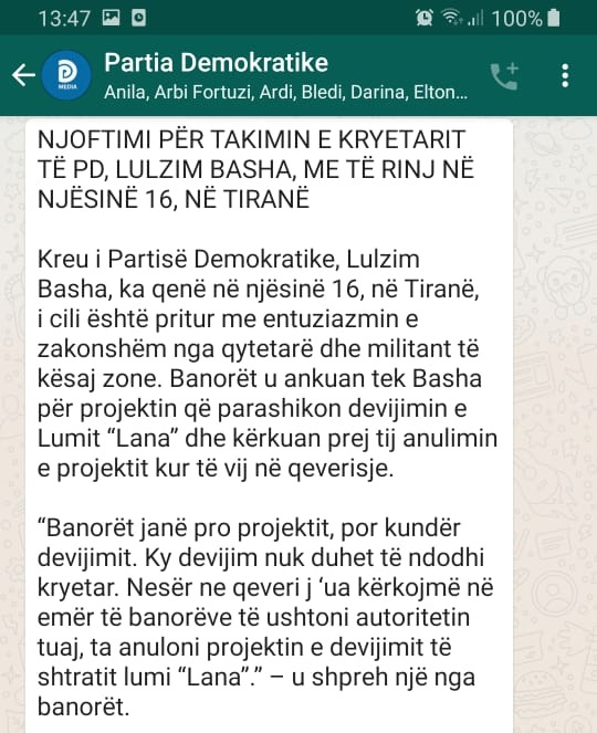Përmes një njoftimi PD është justifikuar duke shkruar se ka qenë vetëm një “lapsus”, ndërkohë që Basha ia faturon përgjegjësinë zyrës së tij për media. “Sqarim: Te njoftimi për takimin me të rinjtë në zonën e Unazës së re, në njoftimin për shtyp ka pasur një lapsus. Fjala është për të rinjtë e degës 16 të PD dhe jo njësisë 16-të”, thuhet në mesazhin e nisur nga PD.