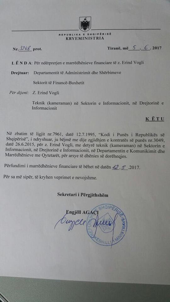 Por ne fakt Vogli eshte shkarkuar prej nje muaji sikurse duket ne shkresen e meposhtme. /b.d