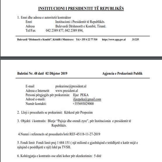 Sipas informacionit që kemi marrë, këto pajisje (mallra), do blihen për rinovimin e mobiljeve dhe zbukurimin e zyrës së presidentit, me rastin e festave të fundvitit.