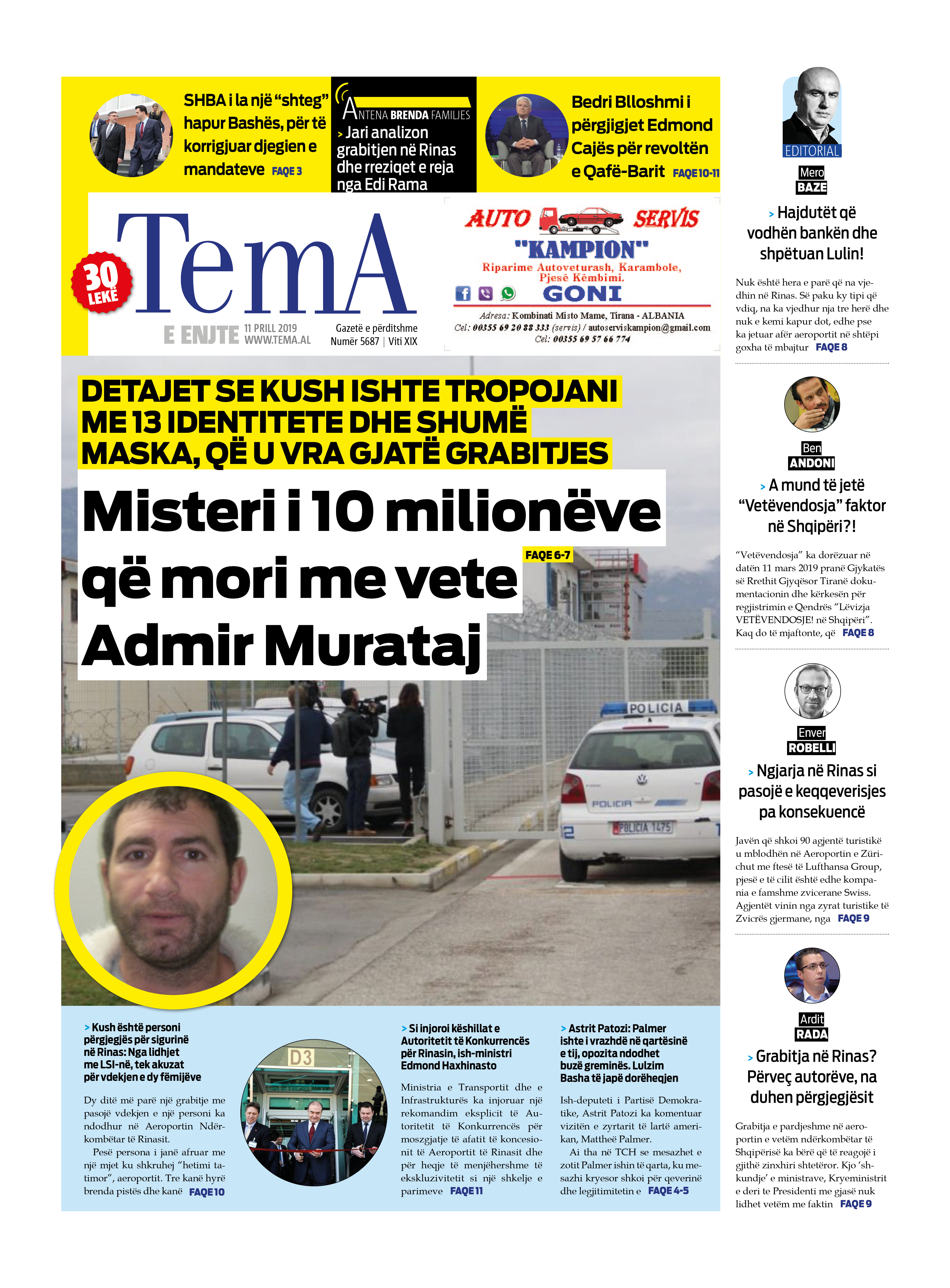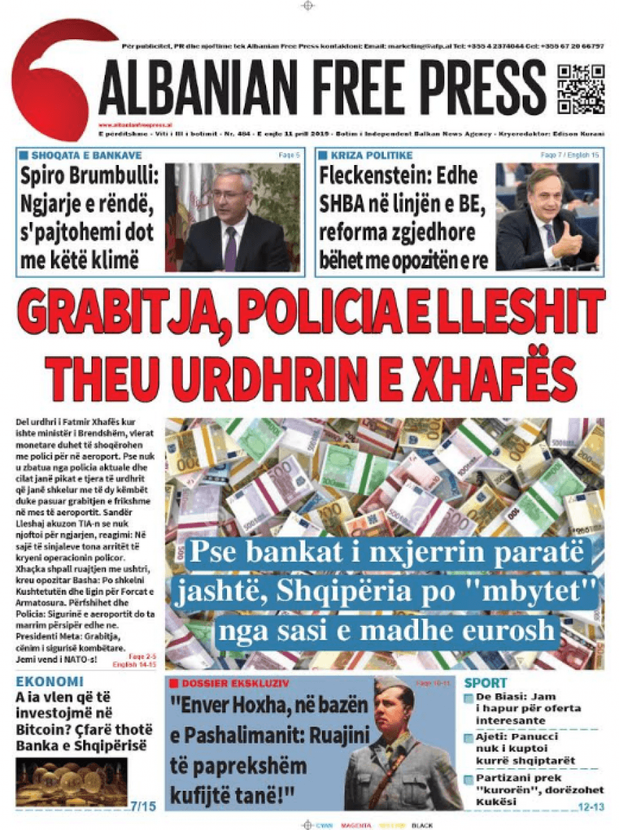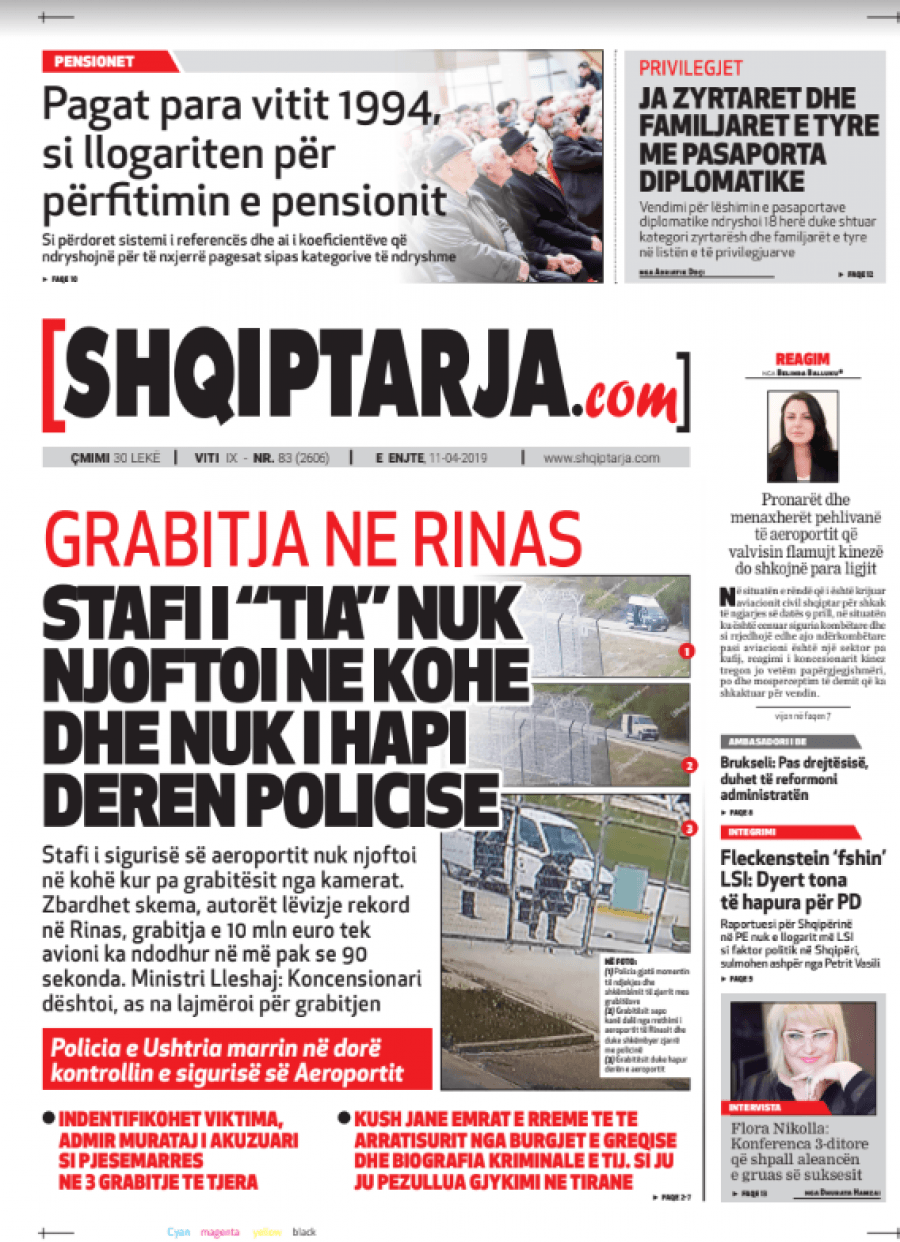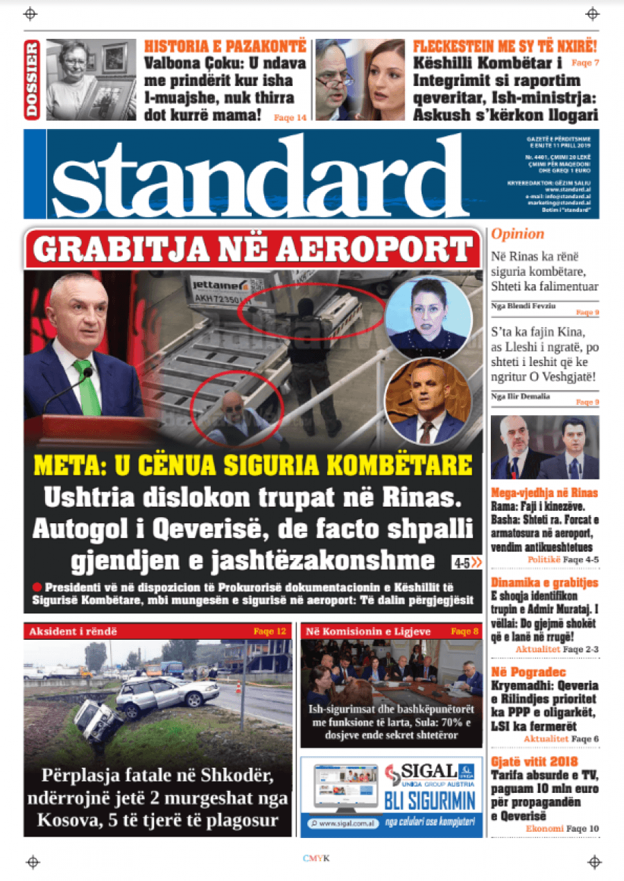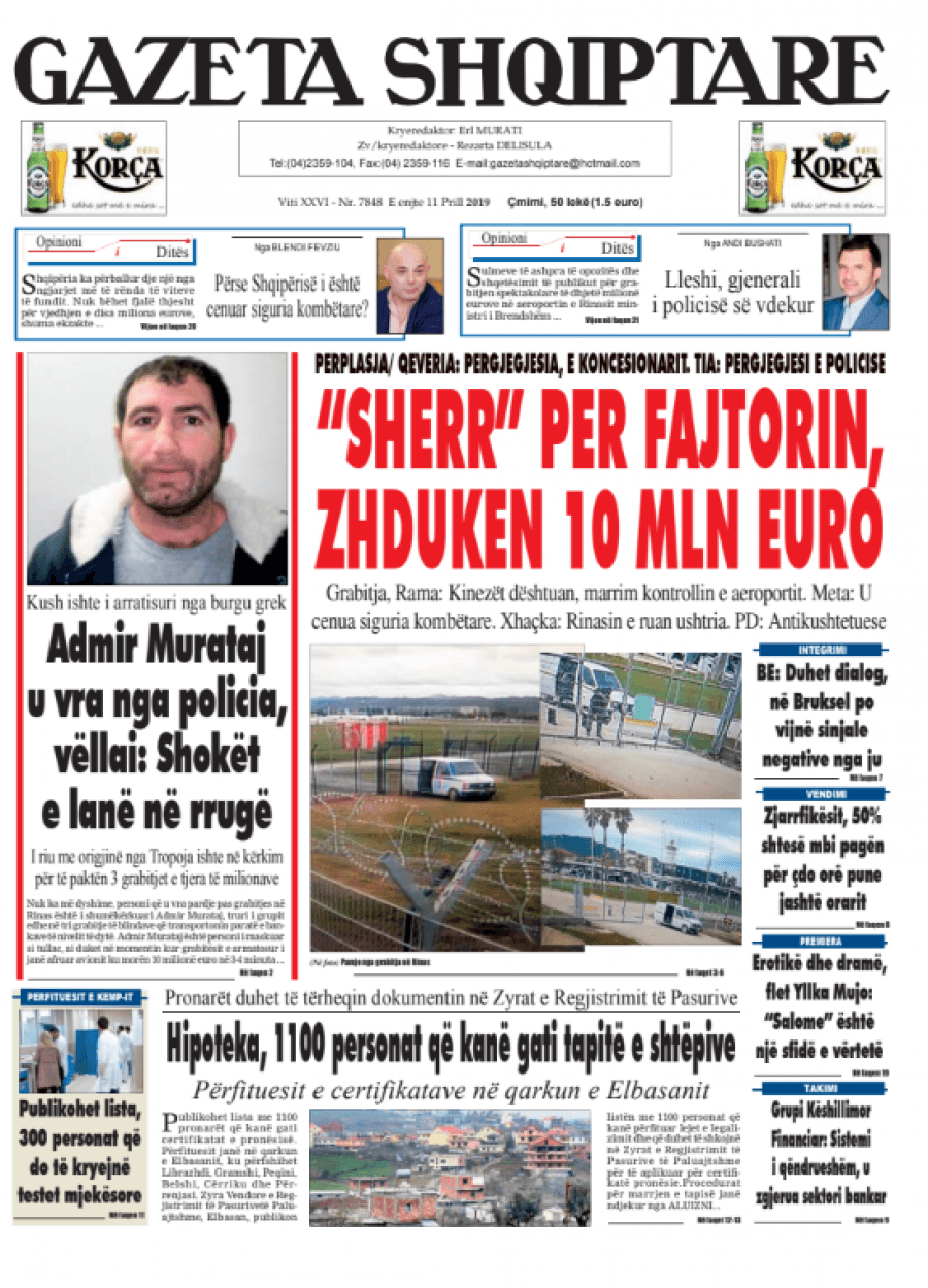 Faqet e para të gazetave, 11 Prill 2019