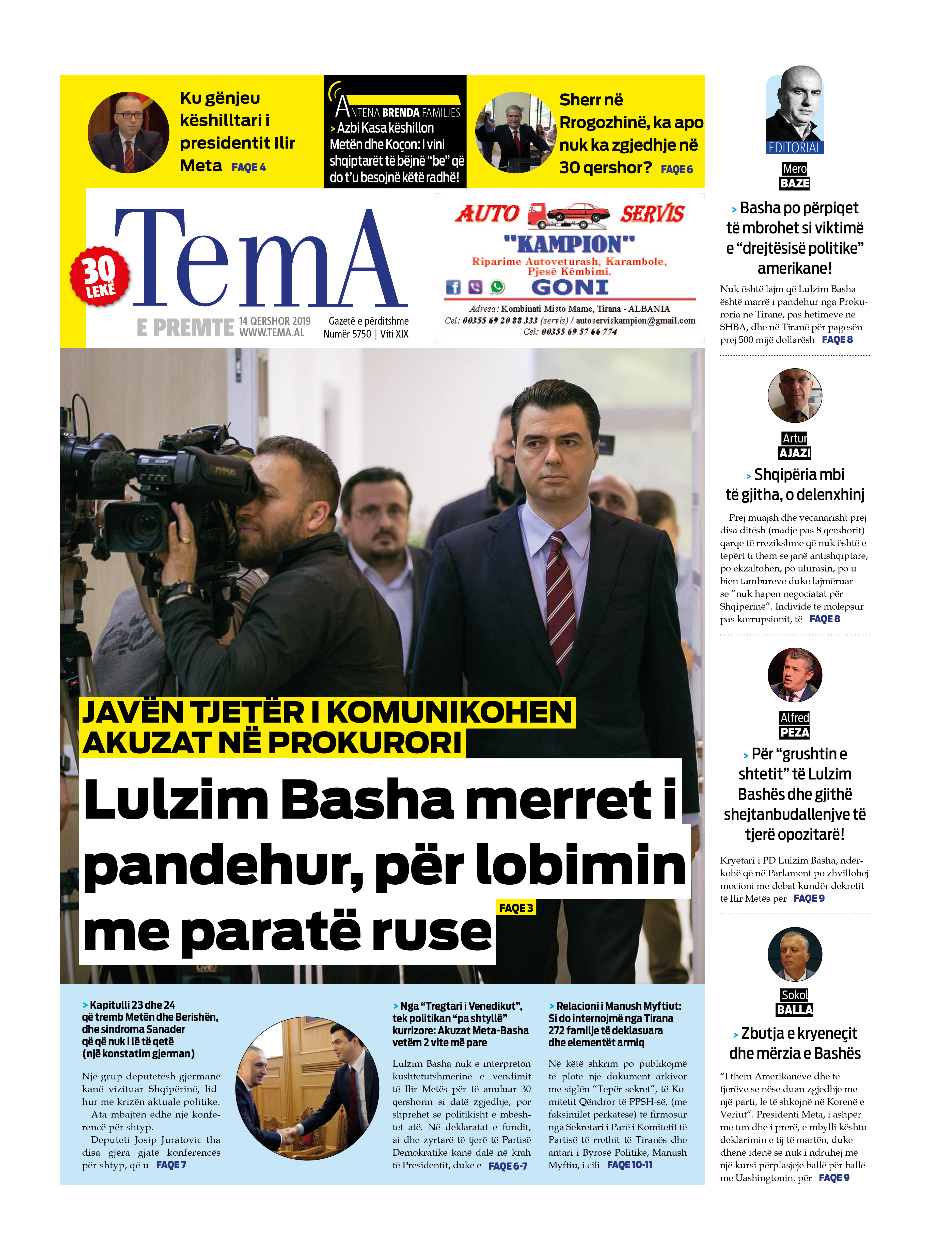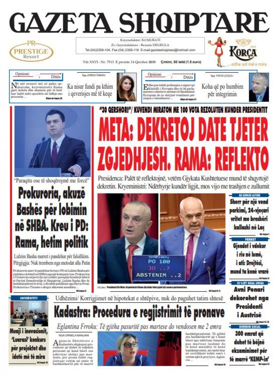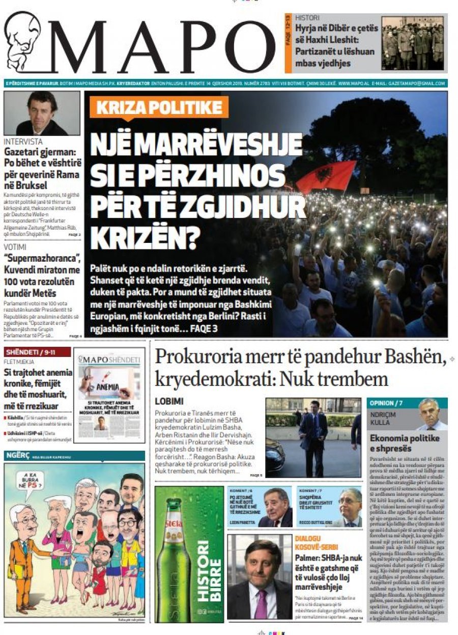 Faqet e para të gazetave, 14 Qershor 2019