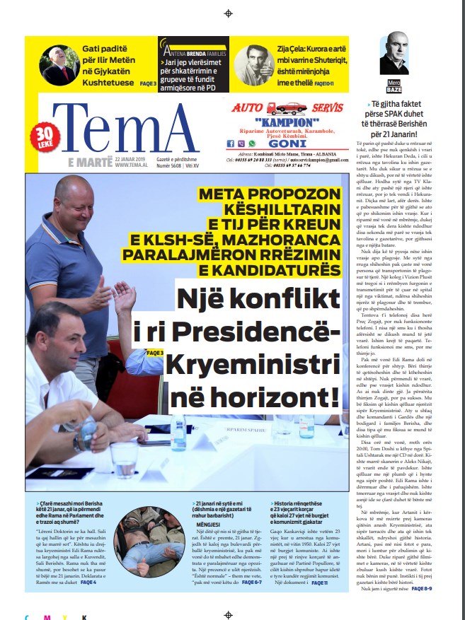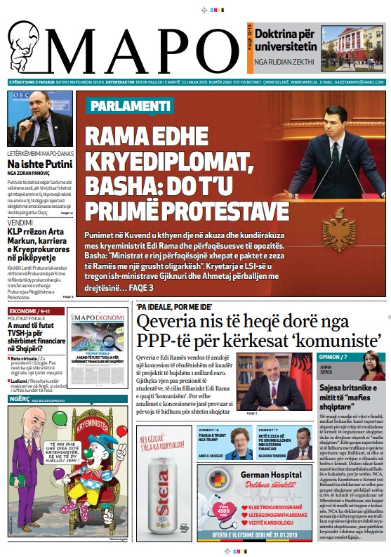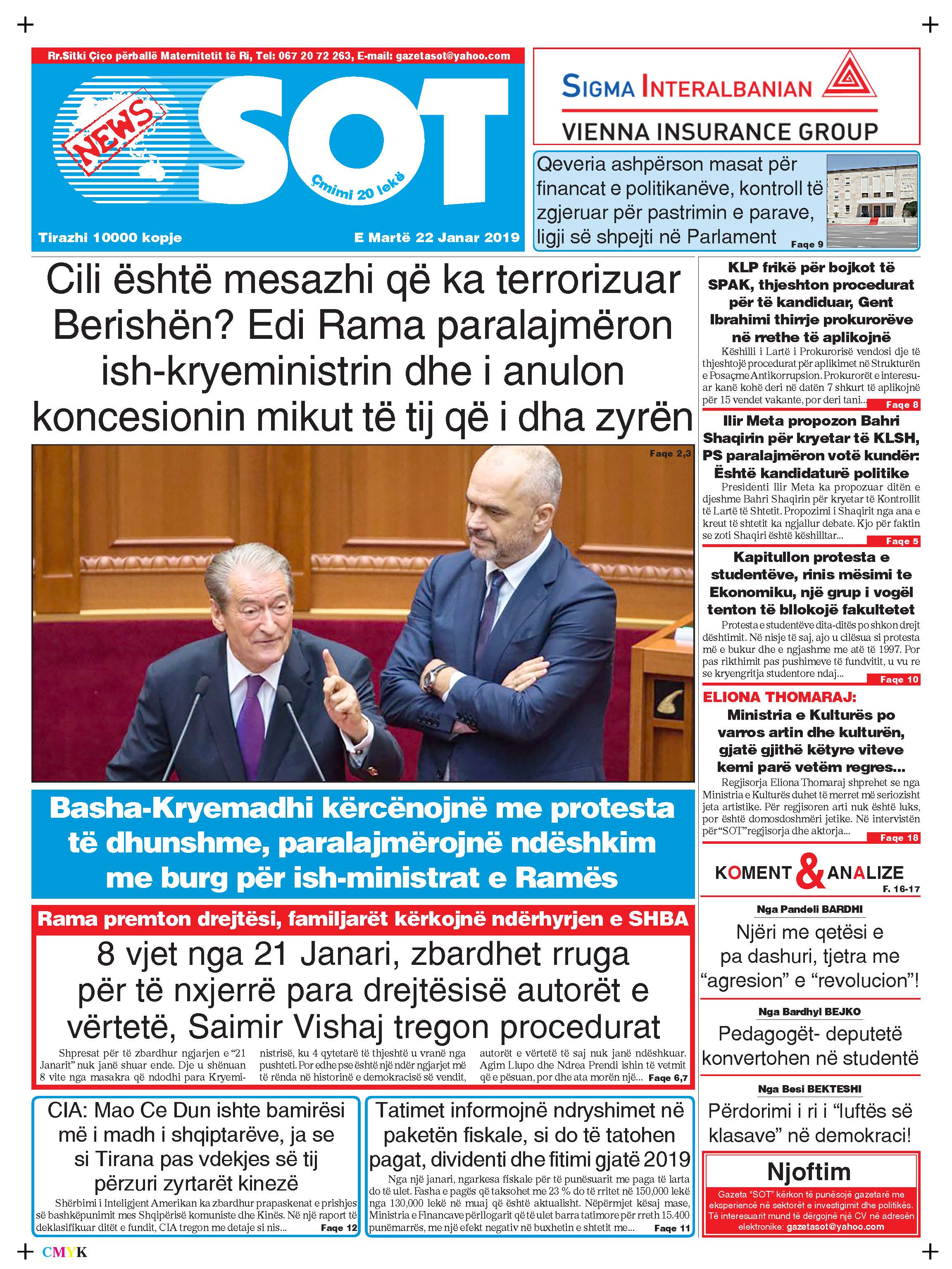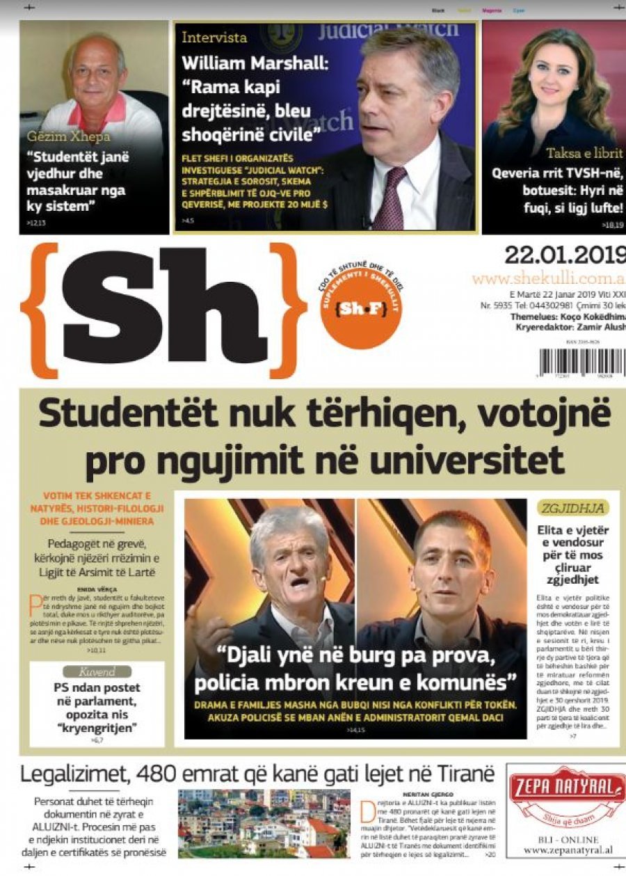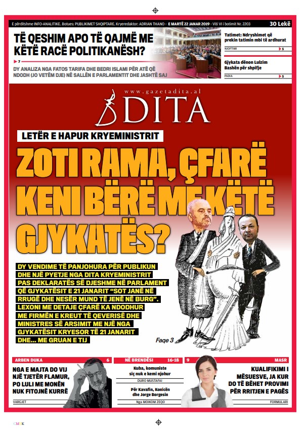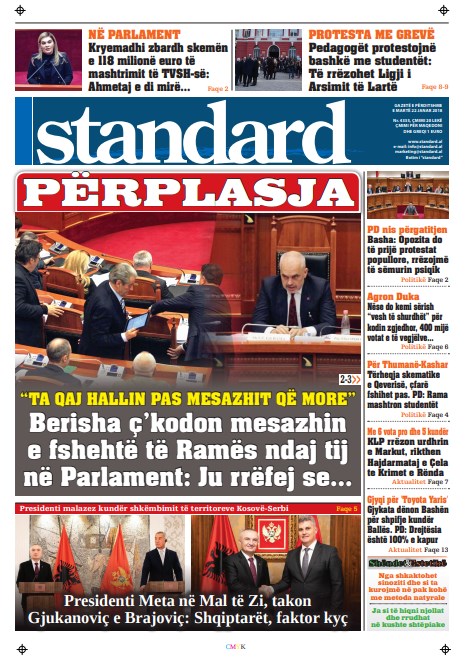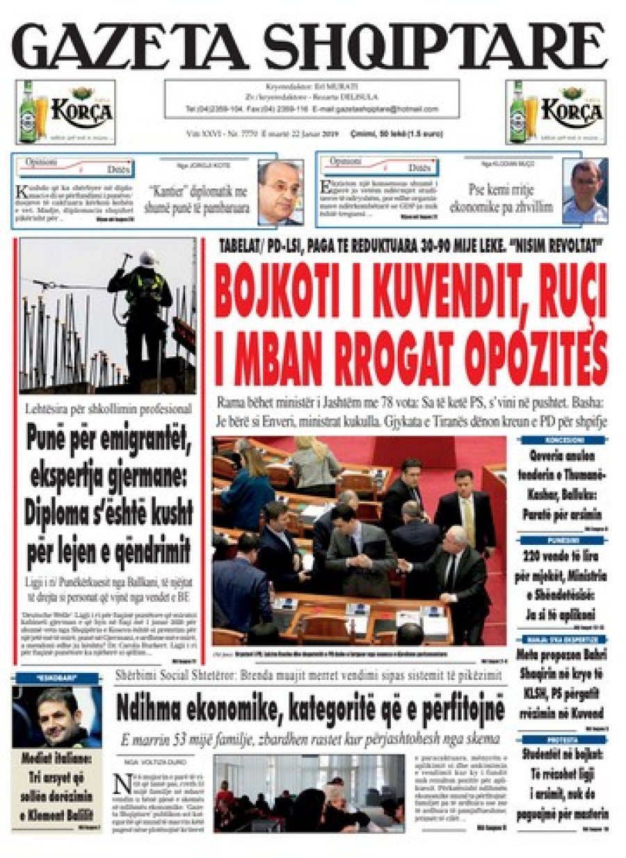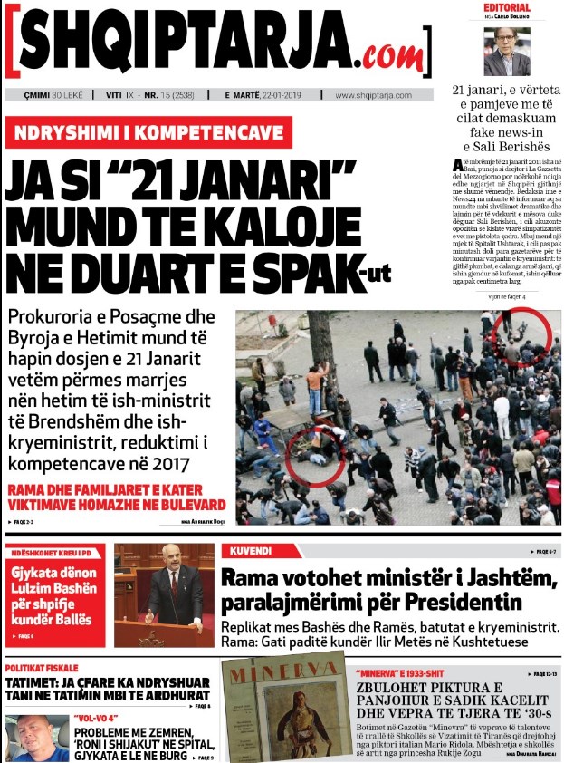 Faqet e para të gazetave, 22 Janar 2019