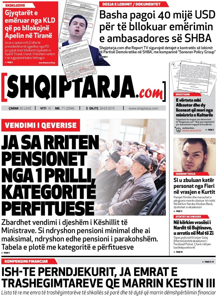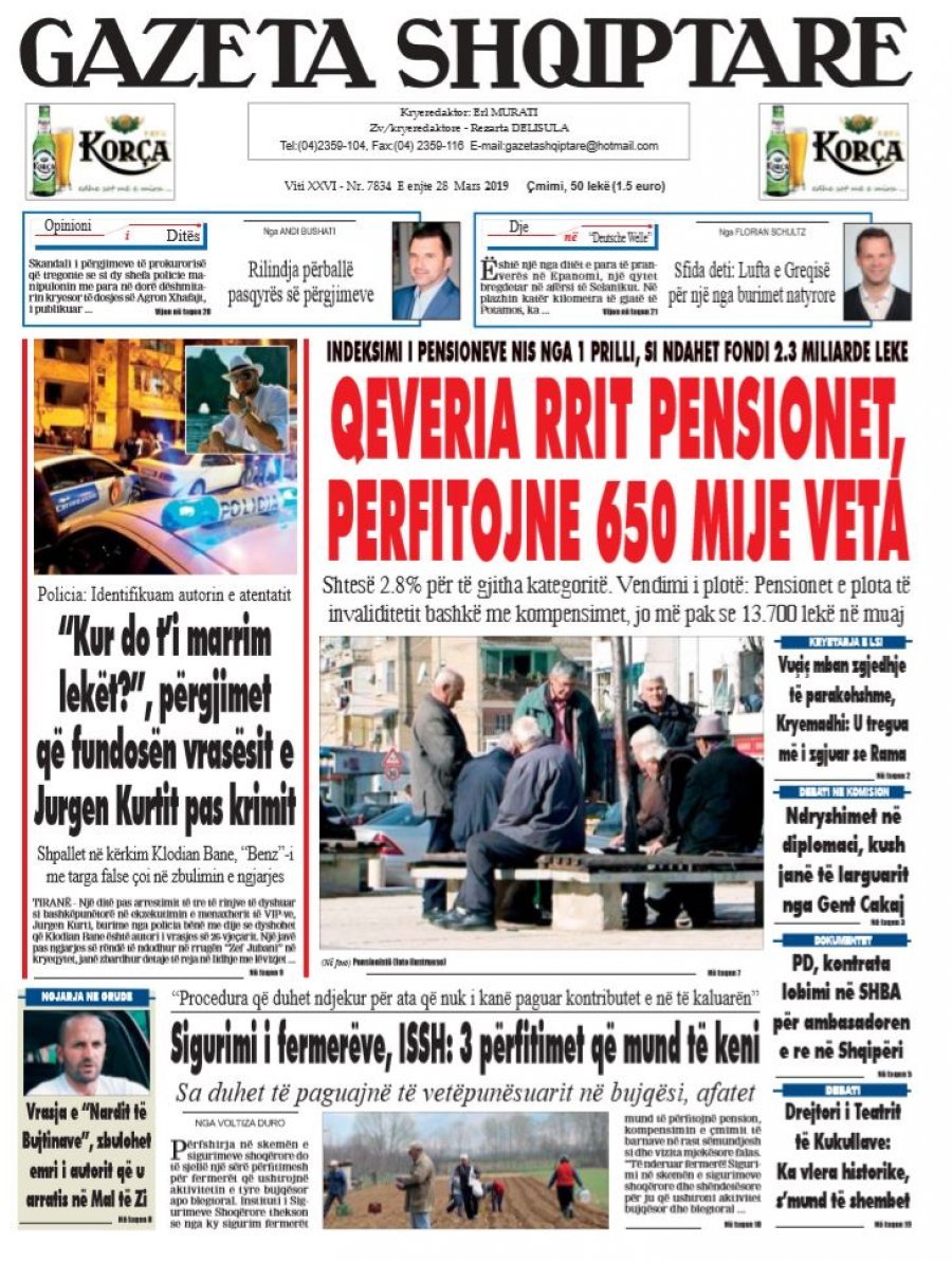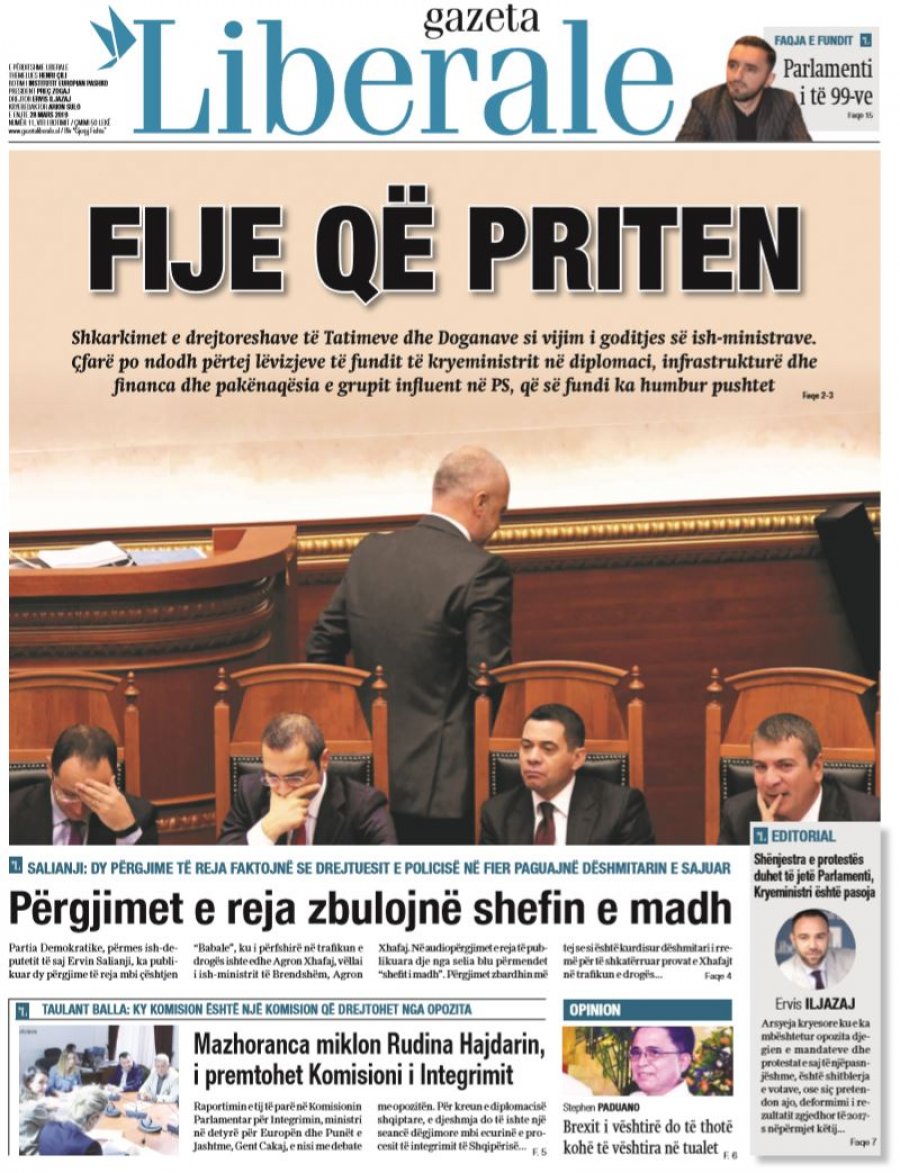 Faqet e para të gazetave, 28 Mars 2019