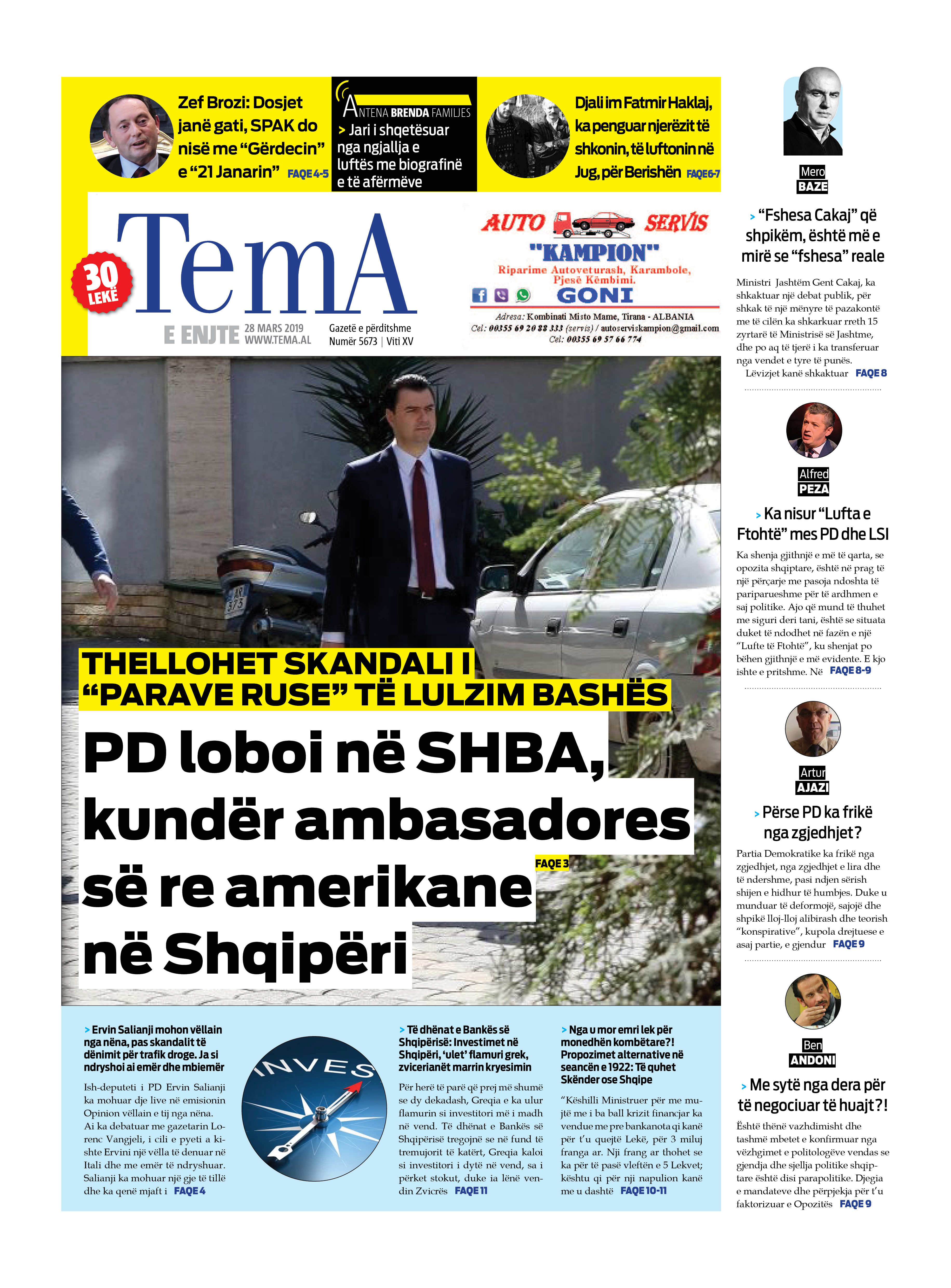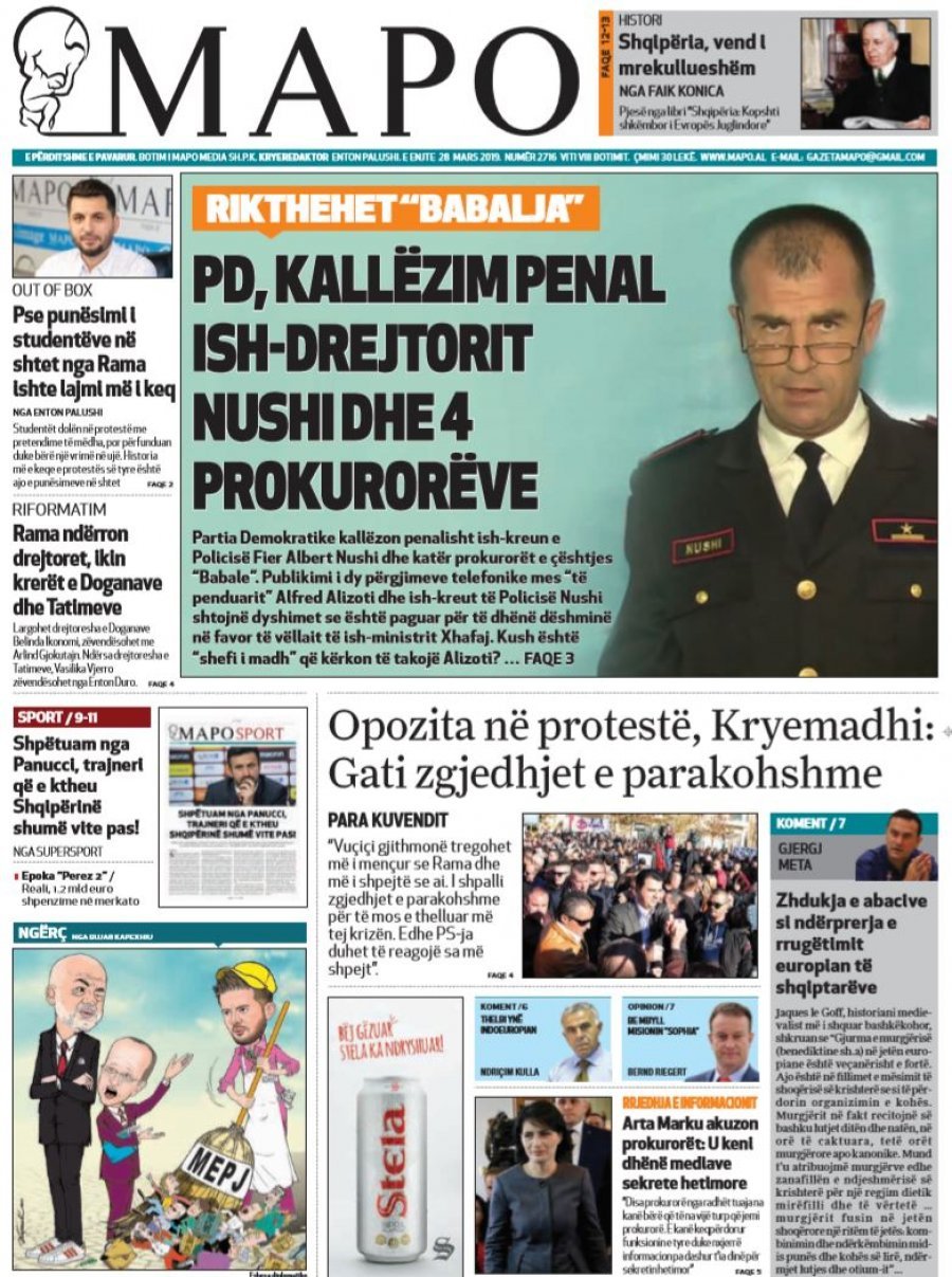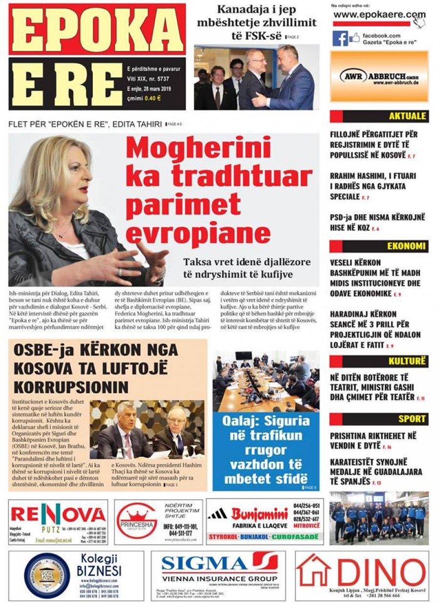 Faqet e para të gazetave, 28 Mars 2019