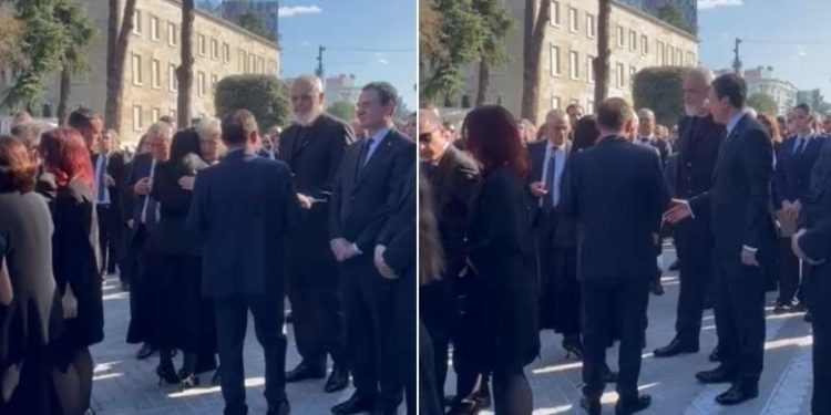 Teksa lideri historik i PS përcillet në banesën e fundit, bashkëshortja e tij Xhoana Nano është filmuar në ambjentet e jashtme të Pallatit të Kongreseve duke takuar Edi Ramën, Albin Kurtin dhe Ali Ahmetin.