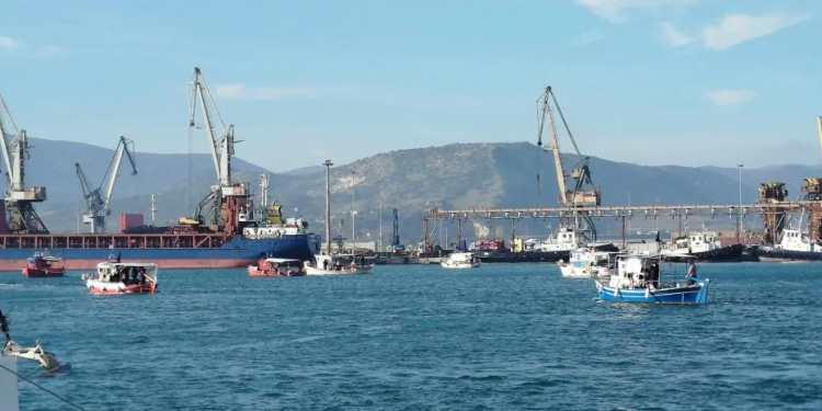 Protestuesit nuk janë të vetëm, pasi peshkatarët kanë dalë në det me dhjetëra anije, duke bllokuar hyrjen e portit nga ana detare.
