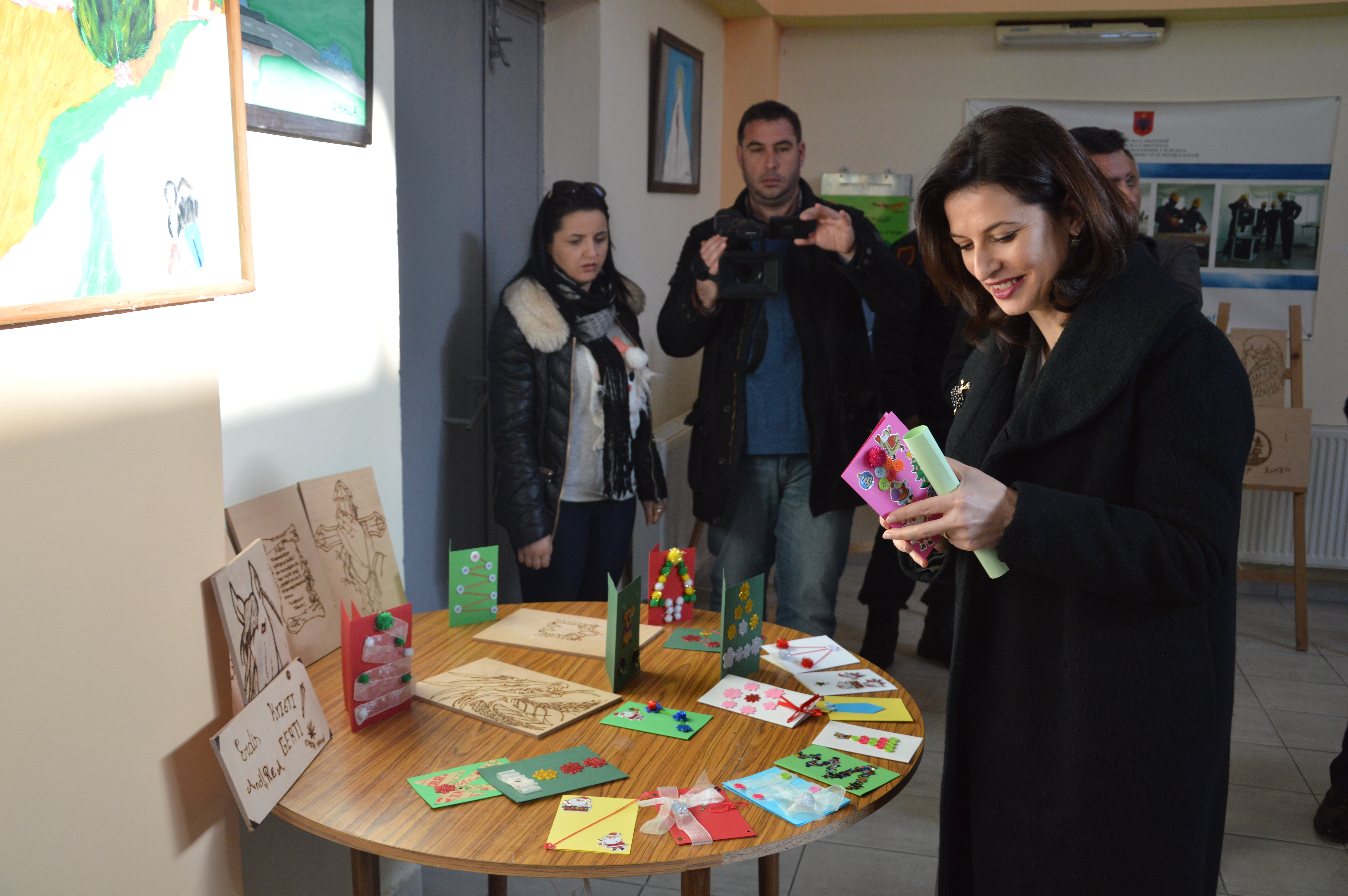 Në këtë ditë festive të miturit në institucionin e Kavajës kishin pregatitur kartolina urimi si dhe punime përmes artit të pirografisë.