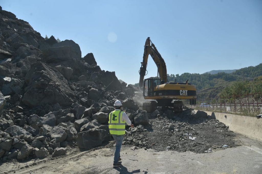 Drejtori i Autoritetit Rrugor Shqiptar Afrim Qendro inspektoi sot fillimin e punës për eleminimin e rrëshqitjes së ndodhur në segmentin që lidh tunelin e Kërrabës me Elbasanin.