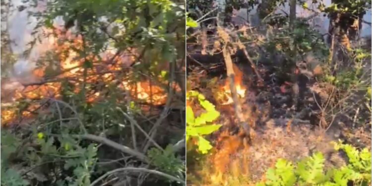Një zjarr ka përfshirë një sipërfaqe pyjore në një zonë mbi fshatin Miras.