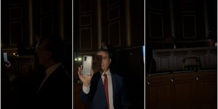 Sali Berisha pasi ka zaptuar foltoren është futur live në Facebook, për të bërë të mundur transmetimin e pamjeve nga brenda sallës, ku deputetët shfaqin indinjatën e tyre me fikjen e dritave.