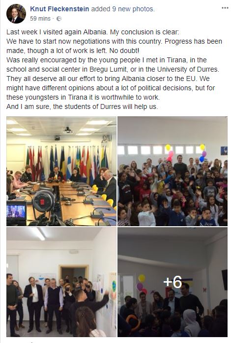 Raportuesi për Shqipërinë në BE, Knut Fleckenstein, ka përsëritur edhe një herë kërkesën e tij për çeljen e negociatave me Shqipërinë.