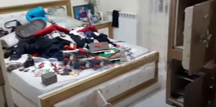 “U futën drejt për në kat të dytë. Kjo është dhoma e gjumit të çiftit, ja çfarë ka ndodhur këtu (dhoma e përmbysur). Ja kasaforta. (e hapur dhe e zbrazur).