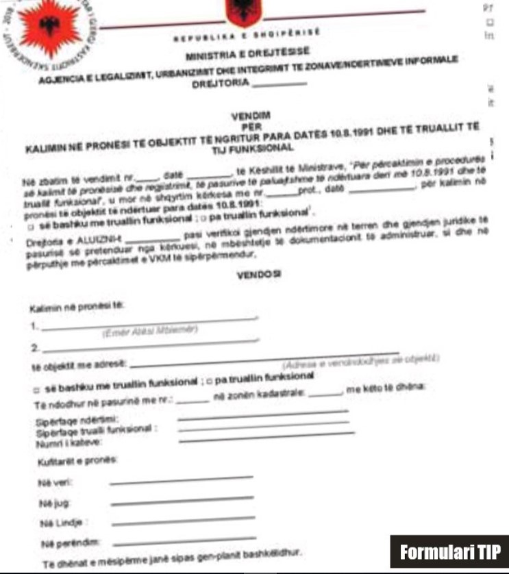 Është zbardhur formulari për të formalizuar ndërtimet para vitit 1991.
