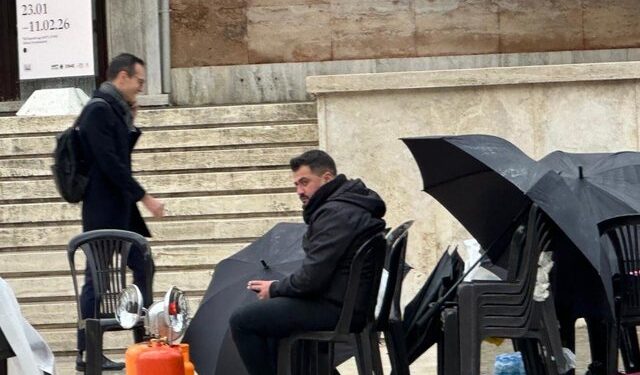 Një shesh që në dokumente nuk ekziston, por në retorikë përdoret si pronë private politike. Një hapësirë publike e riemërtuar me vetëvendosje emocionale, ku një kioskë proteste prej gati dy muajsh mundohet të bindë kalimtarët se këtu po ndodh historia. Ndërkohë, historia kalon pranë: mijëra qytetarë, makina, turistë – dhe protesta mbetet aty, herë me dy vetë, herë me tre, e në momente dramatike vetëm me një rojtar shprese që pret ndërrimin e turnit. Një protestë që nuk rritet, nuk përhapet, nuk infekton askënd. Një protestë që ka mbetur kioskë, jo lëvizje.