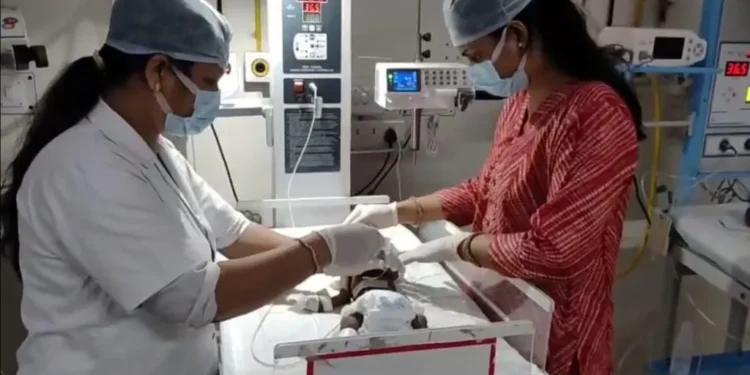 Një vogëlushe vetëm 20-ditëshe që u gjet e varrosur për së gjalli në Uttar Pradesh në Indi, po lufton për jetën.
