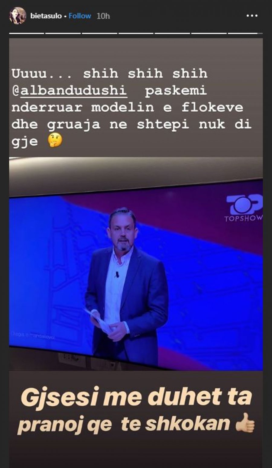 Në emsionin e mbrëmshëm të ‘Top Show’ moderatori Alban Dudushi shfaqet me lookun e tij të ri dhe kjo ishte hera e parë për ne që e shihnim me flokët e krehur anash, por ishte hera e parë edhe për bashkëshorten e tij Bieta Sulo, e cila reagoi përmes një postimi në Instagram..