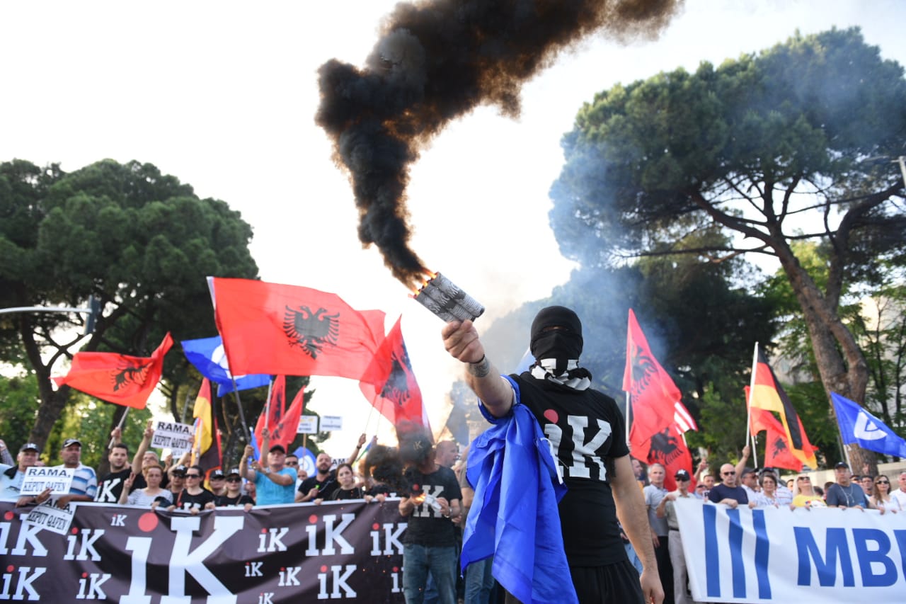 I pranishëm në protest%n e 8 kombëtare të opozitës ishte edhe ish-kryeministri Sali Berisha.
