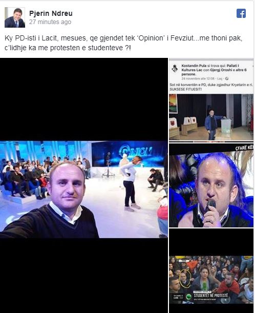 Personi që shikoni në foton e mësipërme është Kostandin Pula, kryetar i Partisë Demokratike të Laçit dhe që është shfaqur mbrëmjen e sotme në emisionin Opinion me studentët, shkruan lexo.al