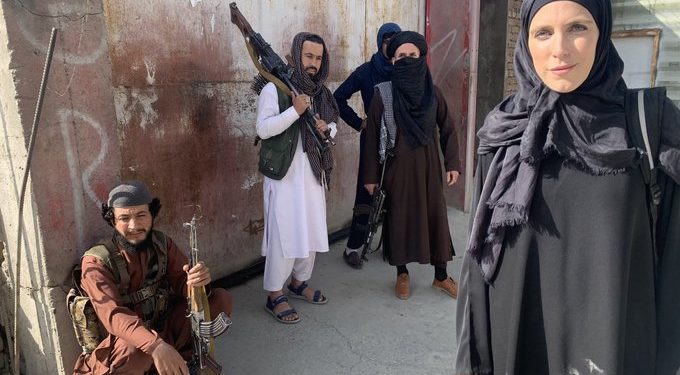 Gazetarja e mediumit CNN, Clarissa Ward është mbuluar me hixhab (veshje për gratë myslimane)në mënyrë që të raportojë ngjarjet në Kabul.
