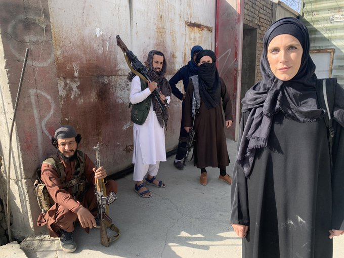 Gazetarja e mediumit CNN, Clarissa Ward është mbuluar me hixhab (veshje për gratë myslimane)në mënyrë që të raportojë ngjarjet në Kabul.