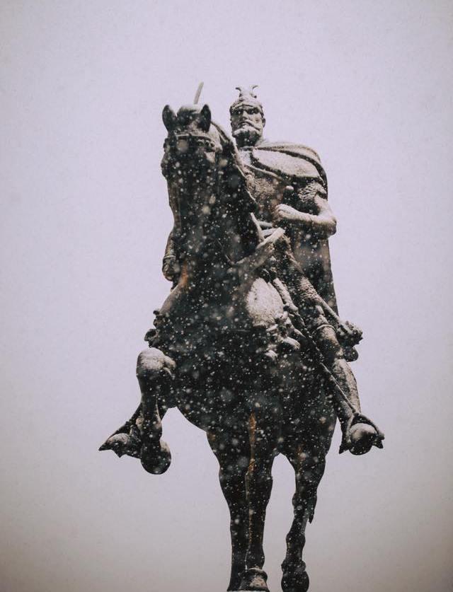 Për të uruar ndjekësit e tij për një ditë të mbarë, ai ka publikuar në Facebook një fotografi të pazakontë nga sheshi “Skënderbej” dhe konkretisht nga shtatorja e heroit tonë kombëtar të mbuluar nga dëbora.