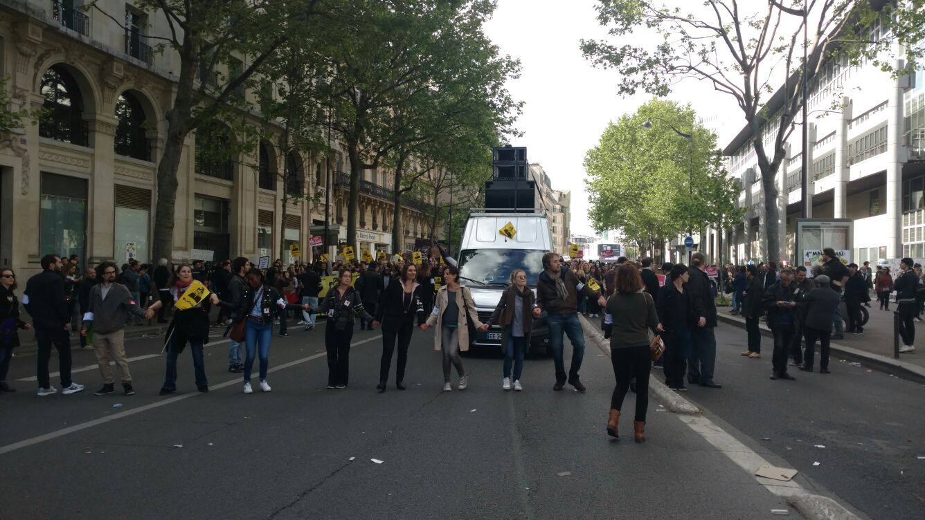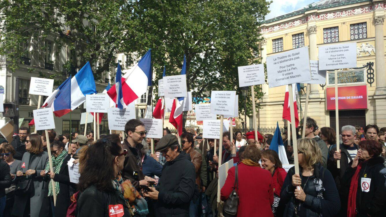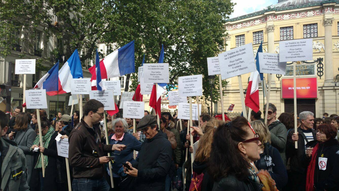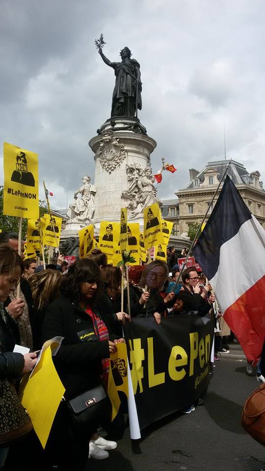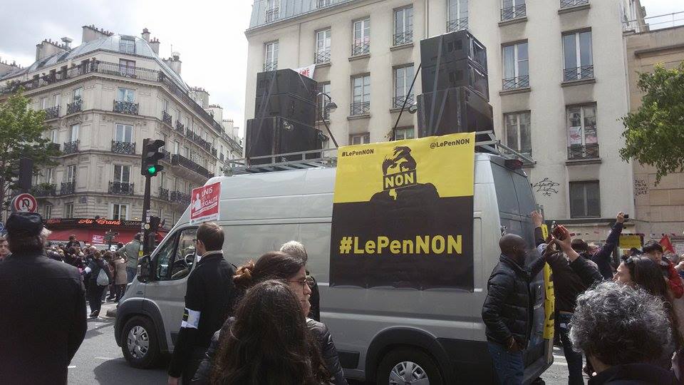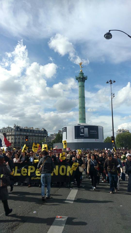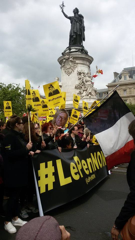 Vetëm pak ditë përpara raundit të dytë të zgjedhjeve Presidenciale në Francë, Parisi, por edhe e gjithë Franca, është mobilizuar kundër Frontit Nacional, parti e ekstremit te djathtë, kandidatja e së cilës Mari Le Pen është në balotazh me Macron në garën për postin më të lartë, atë Presidentit. Në ditën e 1 majit sindikatat francaze edhe pse të ndara, janë bashkuar në një tubim në Paris kundër kandidates së ekstremit të djathtë. Marrshimi filloi ne Place de la Republique ne 14:30 dhe mbaroi ne Place de la Nation duke kaluar ne Place de la Bastille.Ne fillim te kortezhit u perfshine rreth 100 individe me fytyre te mbuluar dhe u perballen me policin pasi hodhen kokteila motolov drejt tyre. Rreth 10 persona te plagosur lehte, kryesisht police dhe njeri prej tyre ne gjendje te rende, i djegur nga nje kokteil molotov. Pervec ketyre pak incidentrve, marshimi shkoi mire, me nje mesazh, “Jo frontit nacional dhe jo urrejtjes per te tjeret”. Në qender te thirrjeve ishte mbrojtja e imigranteve , dhe mbi të gjitha të votohet Macron dhe pse maxhoriteti nuk do t’perfshihet në programin e tij ultraliberal. Javanews.al
